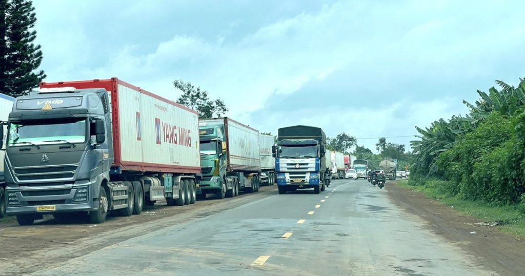 Những ngày vừa qua, hàng loạt container tại các vựa thu mua sầu riêng ở Đắk Lắk phải “nằm đường”,
