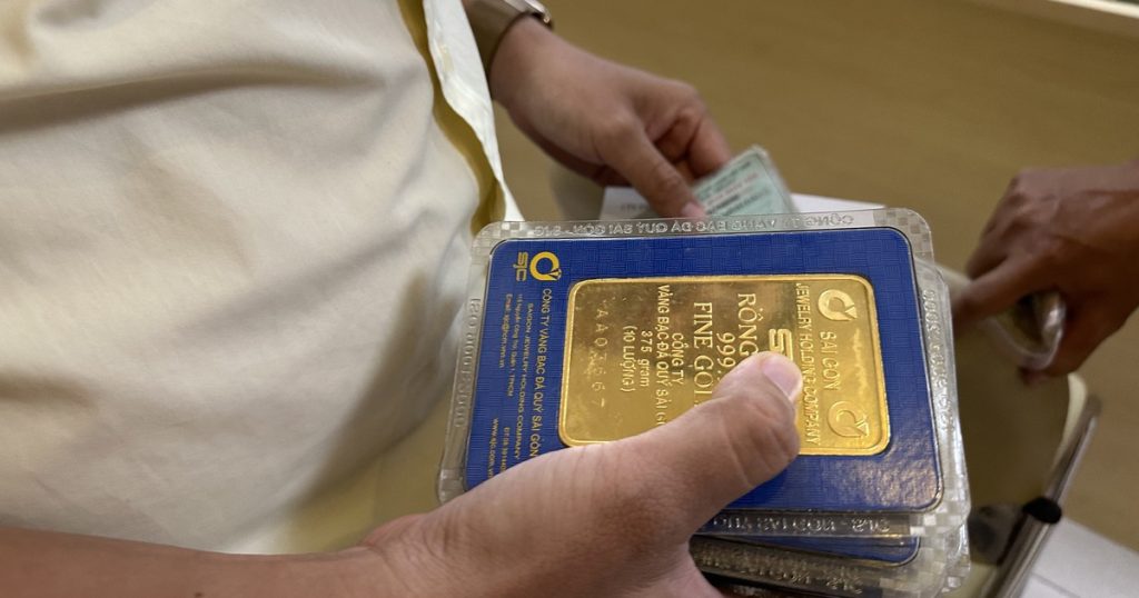 Công ty vàng bạc đá quý Sài Gòn-SJC tăng giá vàng miếng SJC thêm 300.000 đồng mỗi lượng, mua vào